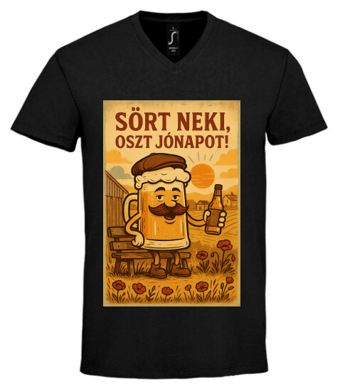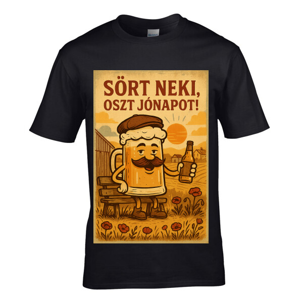 Egyedi Férfi Póló Sör neki oszt jónapot! mintával